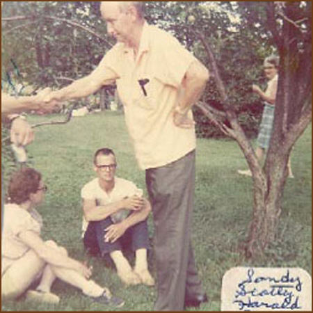 In a statement that had to be paraphrased and reiterated several times, due to the apparent misinterpretation of it by both the president and secretary, Nelson (Ruth 2nd) moved (and read this carefully): That dues be paid as per the rate established in 1964, with the further stipulation that, should the balance in the family account fall below $100 at the close of reunion, additional assessments will be made on adult members to bring the balance up to the aforementioned sum. Esther moved that we amend this motion to provide for a separate fund of $50 (memorial) to be maintained by the first generation, to buy flowers for friends known only by that generation. To this was added the qualification that this fund would be added to the original account. Motion was seconded and defeated. After careful deliberation over the various ramifications of Nelson’s motion as restated by the secretary, Harold decided to take the plunge and second it. Motion was carried.