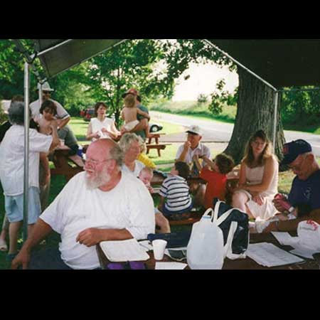 Merle brought up the subject of area families providing overnight accommodations for out-of-town families. He recalled staying with aunts, uncles, and cousins as one of the best parts of the Reunion. It was mentioned that the number of families in the area was dwindling, but, nevertheless, he extended an invitation to out-of-town family to stay at the family farm – beginning in 2005! Ernie brought up the fact that a number of cousins have been absent from the Reunion weekend for a while. He suggested that personal invitations be extended to these families.