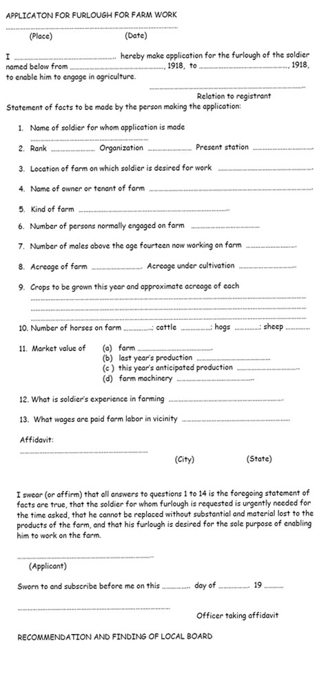 Definite and exceedingly helpful action has been taken by the war department looking toward relieving the farm labor situation during the coming crop season. After weeks of discussion, and volumes of testimony offered by the agricultural press and others interested in the farmers’ proposition, it is now possible for American Agriculturist to definitely announce in detail the plan of operation. Herewith printed are the latest rules from the War department with regard to granting furloughs to enlisted men to engage in agriculture. This will at once claim the attention of many thousands of farmers who need just such relief, in their laudable purpose to help with the war as here indicated. The general order of the war department, No 31, is to “make use of the authority to grant furloughs to enlisted men, to enable them to engage in agriculture during the present farming season.” In so far as this will not interfere with military training at home or the conduct of the war. The definite thing to do is to at once study over these specifications, make up your mind what you want and then take action along the line of the instructions here printed: